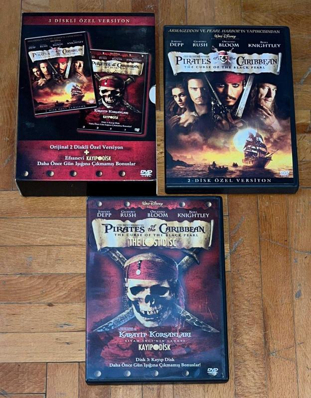 PIRATES OF THE CARIBBEAN THE CURSE OF THE BLACK PEARL 2 DVD ÖZEL VERSİYON VE 3. DVD "THE LOST DISC" İKİNCİ EL, TEMİZ DURUMDA DİL: TÜRKÇE, İNGİLİZCE ALTYAZI: TÜRKÇE, İNGİLİZCE TIGLON 2. BÖLGE / PAL