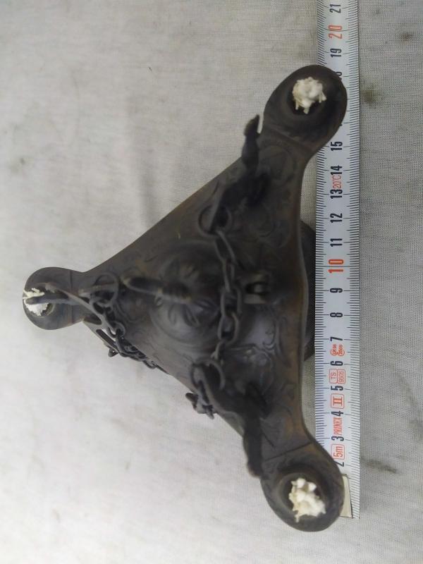 PİRİNÇ 3 HOROZLU KANDİL başlıklı antika/koleksiyon objesi Türkiye menşe’lidir. Objenin ait olduğu dönem bilinmeketedir.
