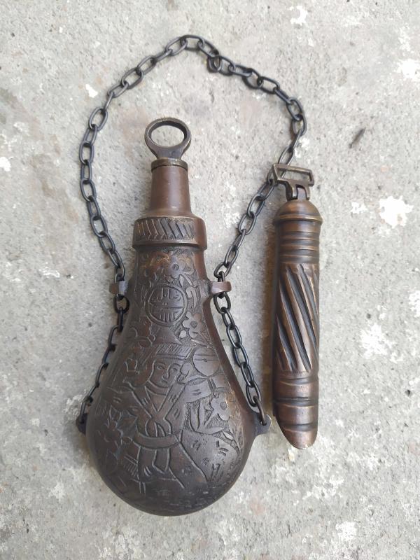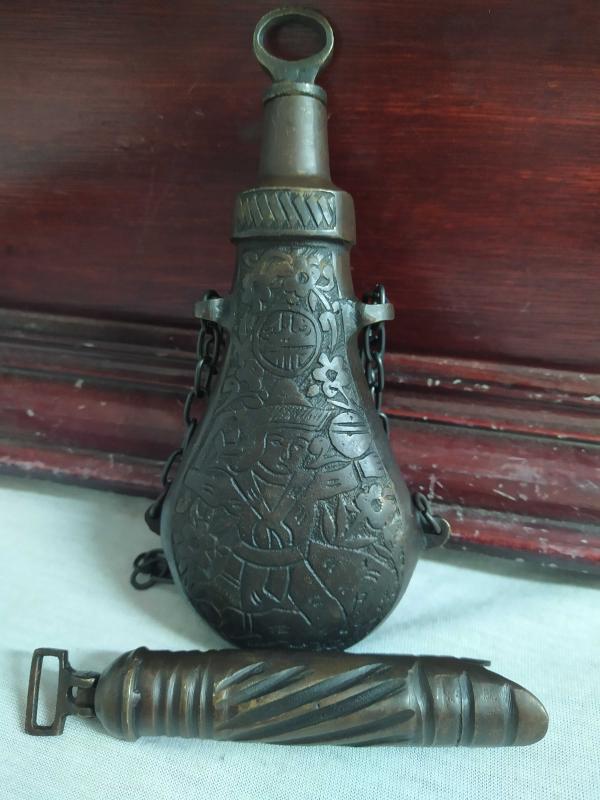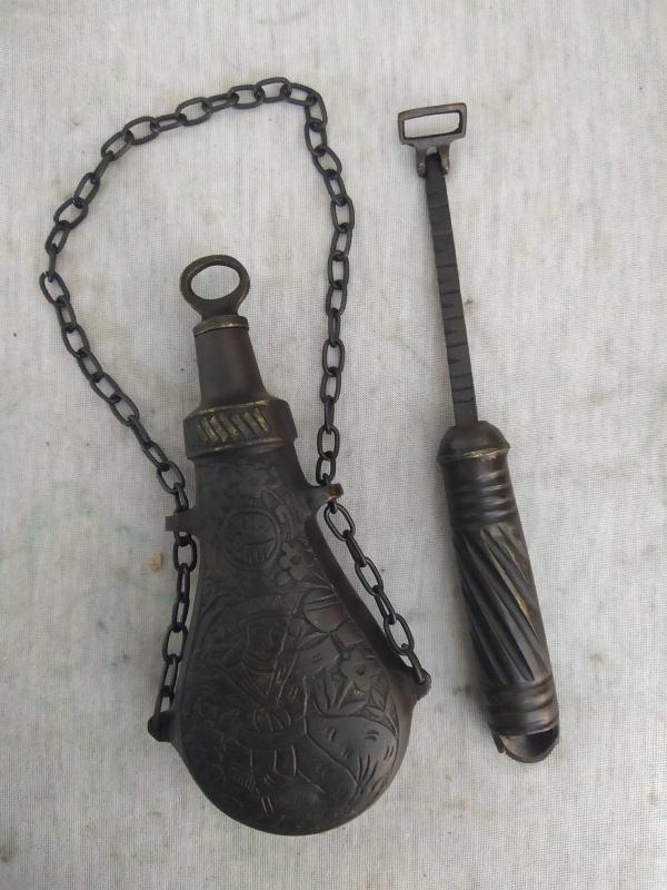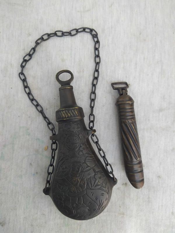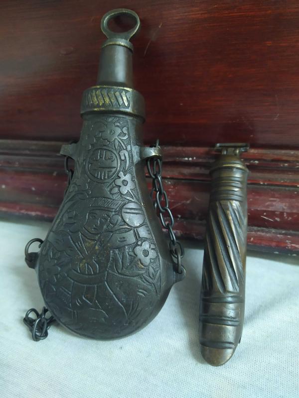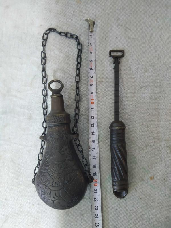 PİRİNÇ MADENİ TOK PARÇALARDIR. İŞÇİLİKLERİ ÇOK İYİDİR. YANLARINDA MEZURE İLE RESİMLERİ MEVCUTTUR. BARUTLUK VE BARUT ÖLÇER İLE TOPLAM 2 PARÇADIR.