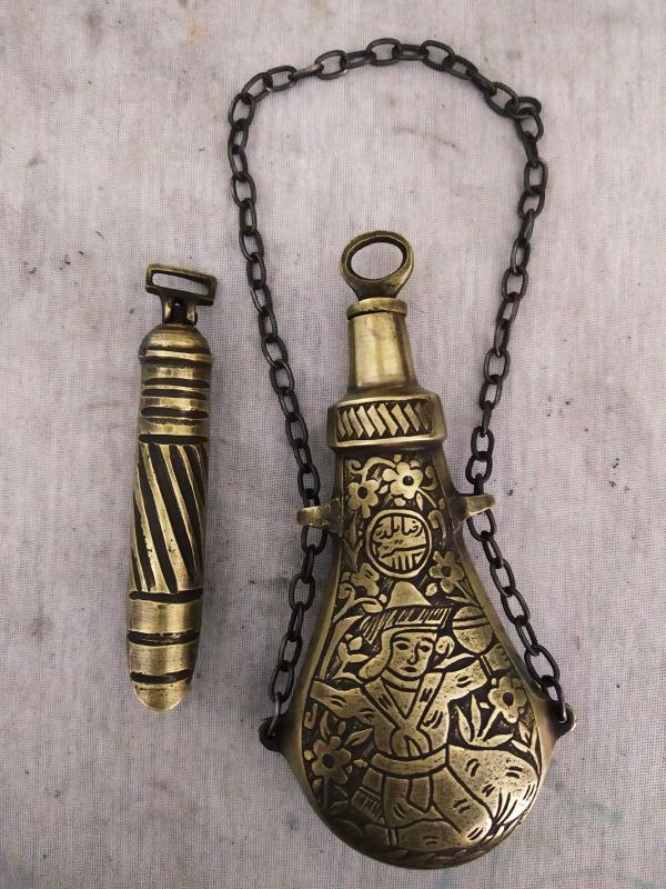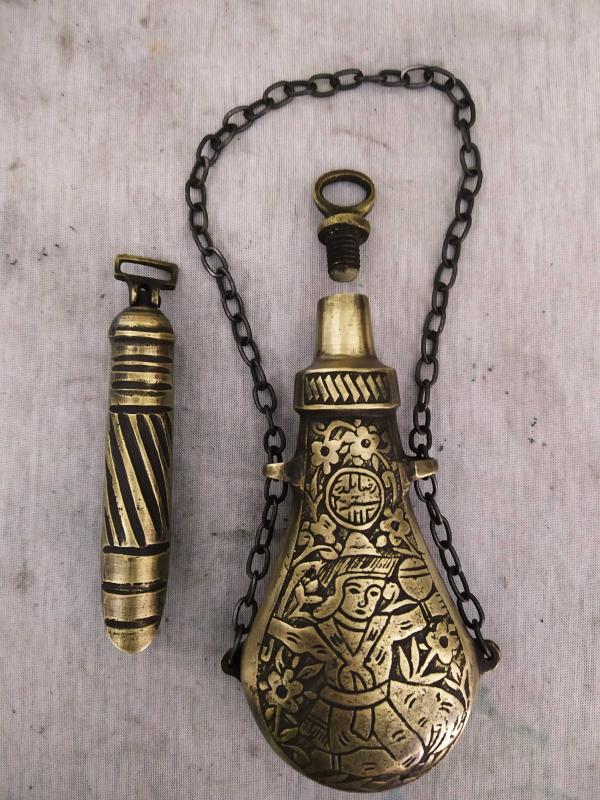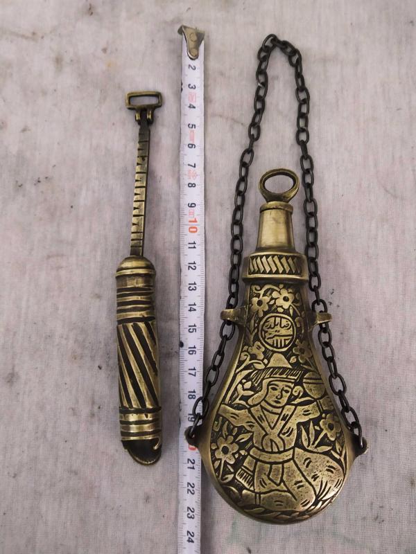 PİRİNÇ MADENİ TOK PARÇALARDIR. İŞÇİLİKLERİ ÇOK İYİDİR. YANLARINDA MEZURE İLE RESİMLERİ MEVCUTTUR. BARUTLUK VE BARUT ÖLÇER İLE TOPLAM 2 PARÇADIR.