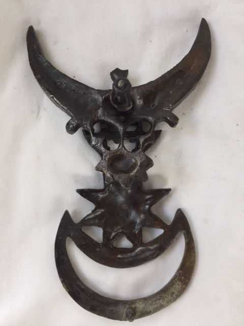 PİRİNÇ DIŞ KAPI TOKMAĞI AY YIDIZ başlıklı antika/koleksiyon objesinin menşei belirtilmemiştir. 1940 sonrası dönemine aittir.