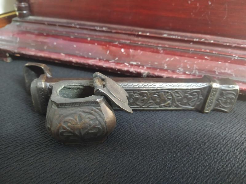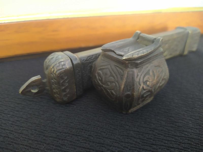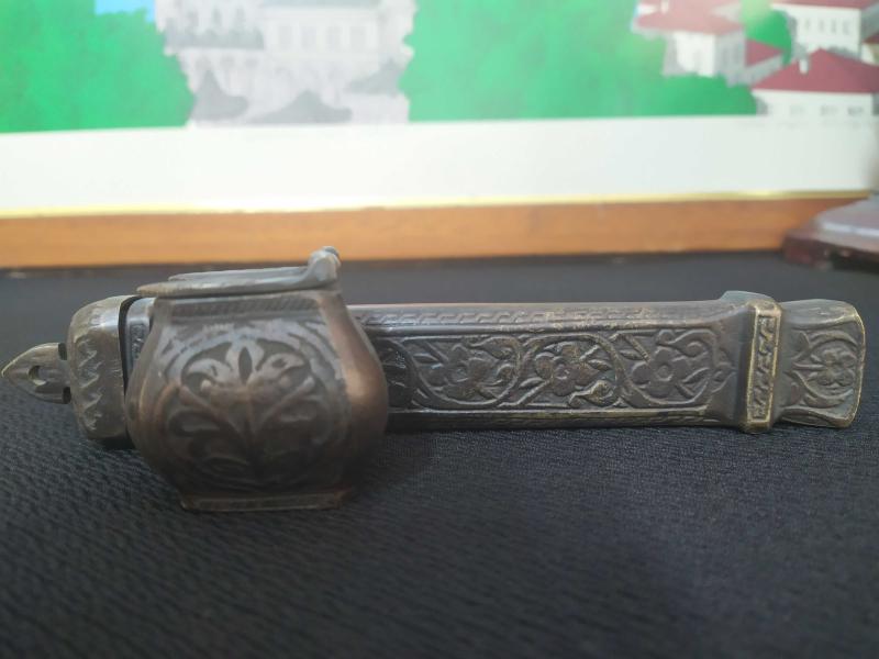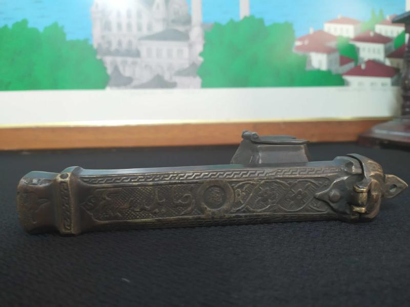 PİRİNÇ MADENİ TOK BİR DİVİTTİR. İŞÇİLİĞİ VE ÜZERİNDEKİ İŞLEMELERİ ÇOK GÜZELDİR. YANINDA MEZURE İLE RESİMLERİ MEVCUTTUR. ESKİLERDEN TAVUK KANADIYLA YAZI YAZMAK İÇİN KULLANIRLARMIŞ.