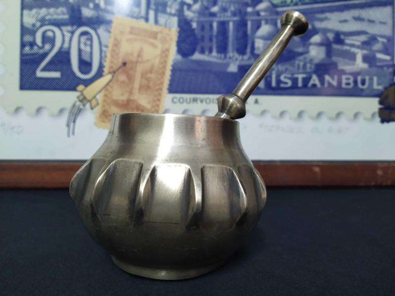 PİRİNÇ HAVAN (ALTI YAZILI) başlıklı antika/koleksiyon objesi Türkiye menşe’lidir. Objenin ait olduğu dönem bilinmeketedir.