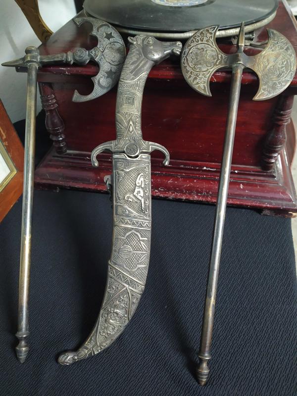 PİRİNÇ KAMA VE TEBER TAKIMI başlıklı ürün, Antika-Koleksiyon, Hobi-Sanat > Antika > Antika Metal Objeler > Pirinç kategorisinde İkinci El olarak satışa sunulmuştur.
