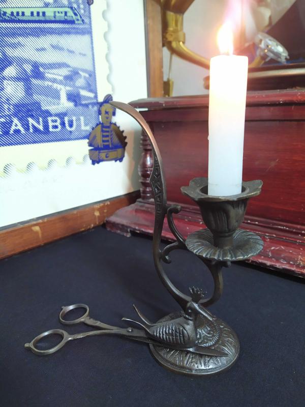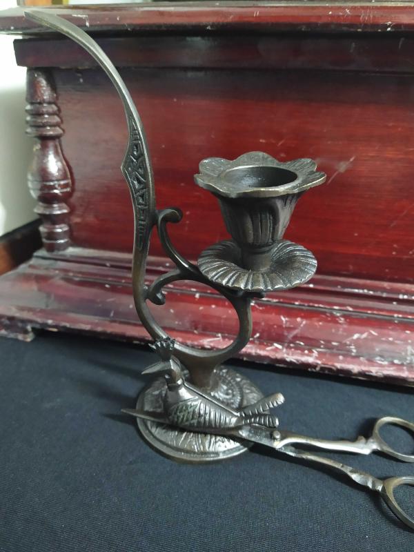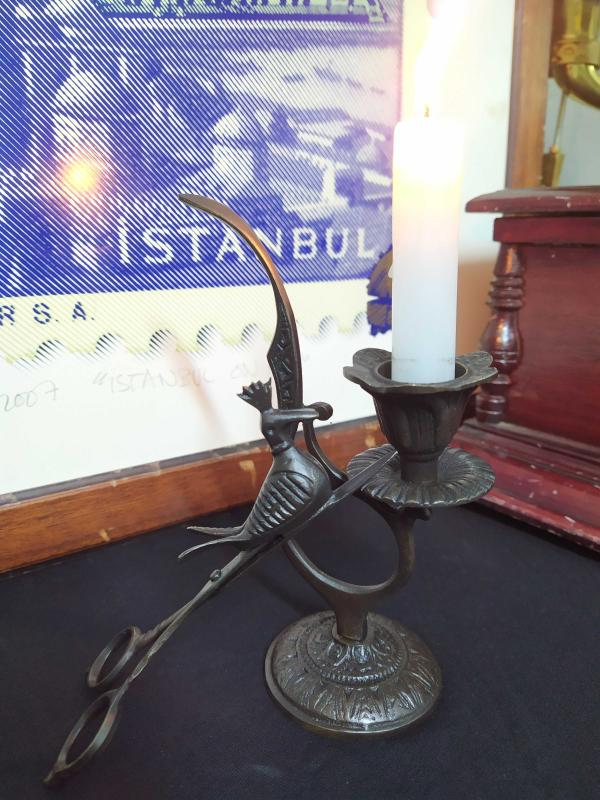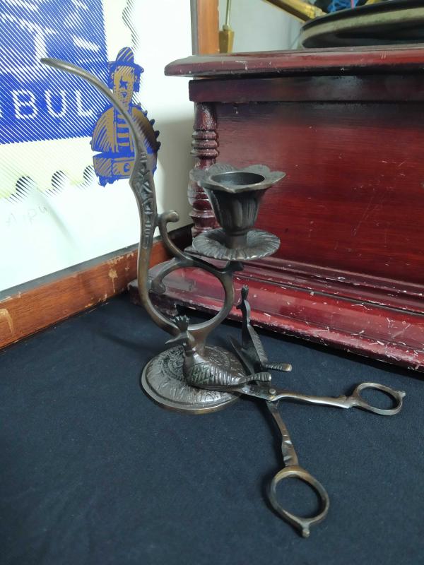 PİRİNÇ ŞAMDAN VE MUM MAKASI başlıklı antika/koleksiyon objesi Türkiye menşe’lidir. Objenin ait olduğu dönem bilinmeketedir.