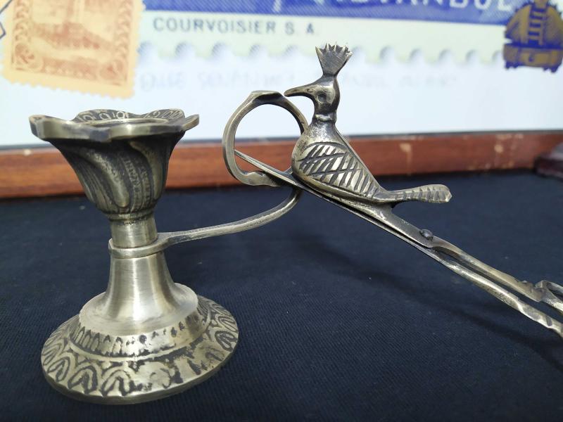 PİRİNÇ ŞAMDAN VE MUM MAKASI başlıklı antika/koleksiyon objesi Türkiye menşe’lidir. Objenin ait olduğu dönem bilinmeketedir.