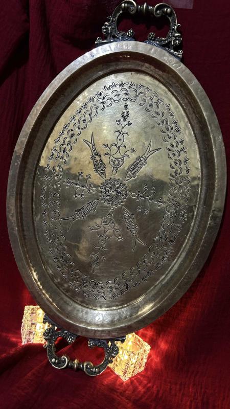 PİRİNÇ TEPSİ KALEM İŞÇİLİKLİ başlıklı antika/koleksiyon objesi Türkiye menşe’lidir. Objenin ait olduğu dönem bilinmeketedir.
