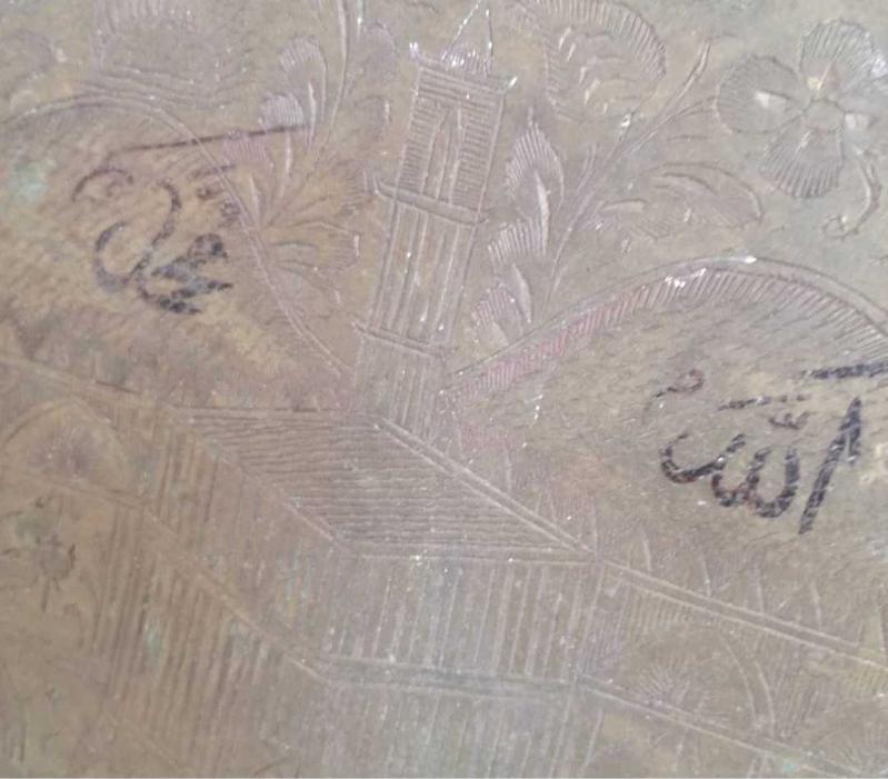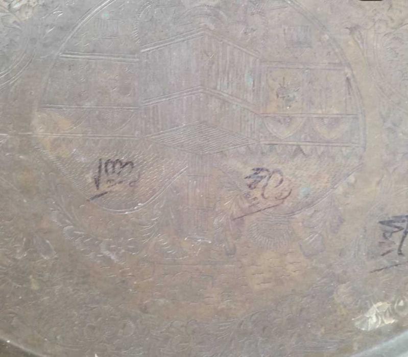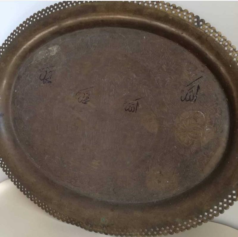 Kabe temalı ,üzerinde arapça yazılı eski dönem tepsi