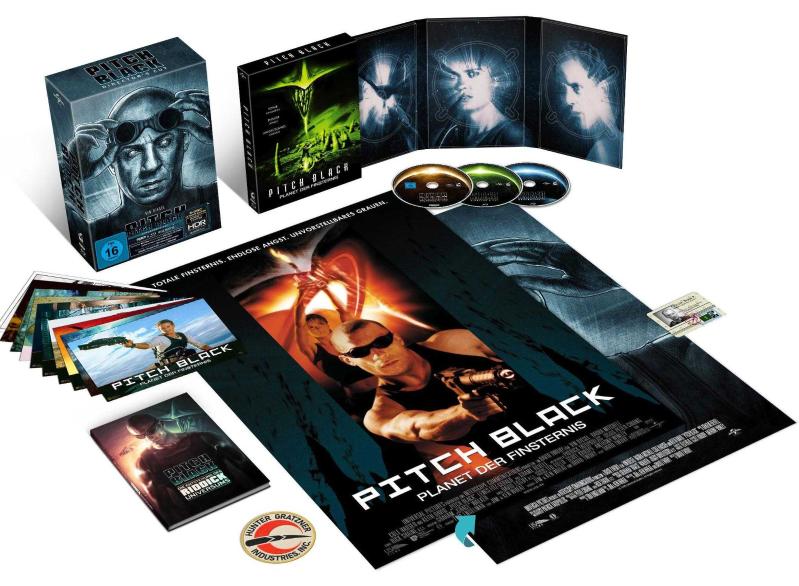 PITCH BLACK Director's Cut 3 Disk Ultimate Numaralı XL Kutulu Steelbook Edition 4K Versiyonu Pitch Black Director's Cut Film Posteri, Film Karakter Kartları, 180 Sayfa Film Detay Kitapciği ile 3 Disk: 4K Ultra HD + Blu-ray + Bonus Blu-ray - 4K Ultra HD Bluray Ses: English German 4K Ultra HD Bluray Altyazı: German, English Blu-ray Ses: English German Blu-ray Altyazı: English German - Orjinal XL Steelbook Kutusunda Ambalajı Hiç Açılmamış Sıfır Ürün Resimdeki Ürün Gönderilecektir Diğer Filmlere Bakmayı Unutmayın