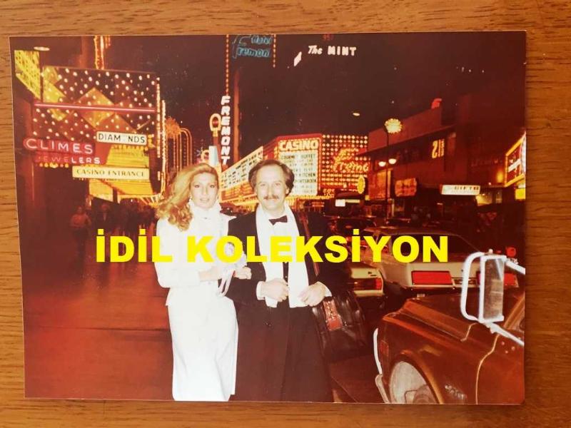 PİYANİST ŞANTÖR YAVUZ ÖZIŞIK'IN ORİJİNAL FOTOĞRAFI - 17,5 x 13 cm EBADINDA - YAVUZ ÖZIŞIK ve EŞİ BİRGÜL ÖZIŞIK AMERİKA'DA LAS VEGAS CADDELERİNDE MEŞHUR CASİNO MEKANLARININ ÖNÜNDE POZ VERİRLERKEN ÇEKİLMİŞ BİR HATIRA FOTOĞRAFI