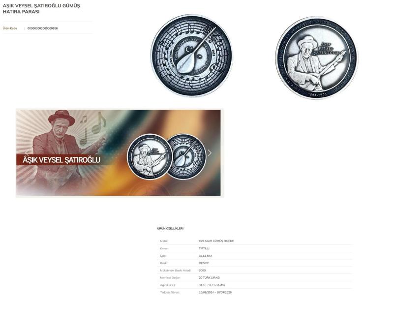 PLA Mini Stant Hediyeli, Aşık Veysel Gümüş Hatıra Parası, 1 yıl önce satışa sunulmuştur.