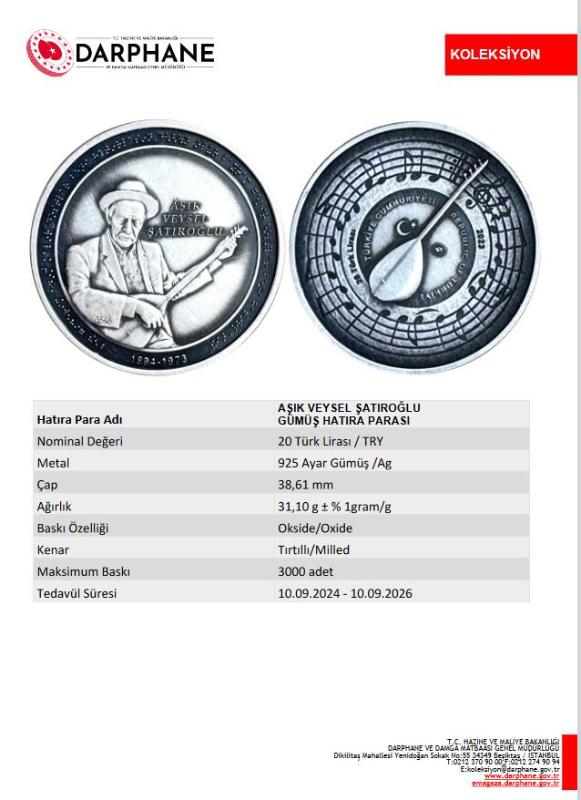 PLA Mini Stant Hediyeli, Sertifikalı, 5.000 TL ve üzerine Ücretsiz Kargo Kapsülünden hiç çıkarılmamış okside gümüş, koleksiyon fazlası hatıra para, orijinal darphane kutusu ile beraber gönderilecektir. Sanatçı Nalan YERLİBUCAK ÇAKIR tarafından tasarlanan hatıra paranın bir yüzüne; Körler (Braille) alfabesi ile Ben giderim adım kalır, DOSTLAR BENİ HATIRLASIN, Düğün olur, bayram gelir, DOSTLAR BENİ HATIRLASIN. dizesi yazılmış, diğer yüzüne ise; “Dostlar beni hatırlasın” eserinin notaları işlenmiştir.