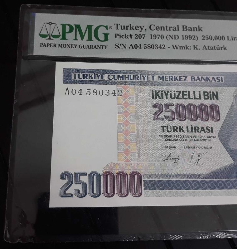 PMG SERTİFİKALI 7. EMİSYON 250 BİN LİRA başlıklı ürün, Efemera, Müzik, Sinema > Nümismatik, Para, Madalya > Kağıt Paralar > Cumhuriyet Dönemi > 7. Emisyon kategorisi altında İkinci El olarak satılmaktadır.