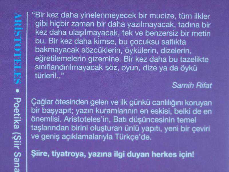 POETİKA , ARİSTOTELES , - adlı eser Türkçe dilindedir.
