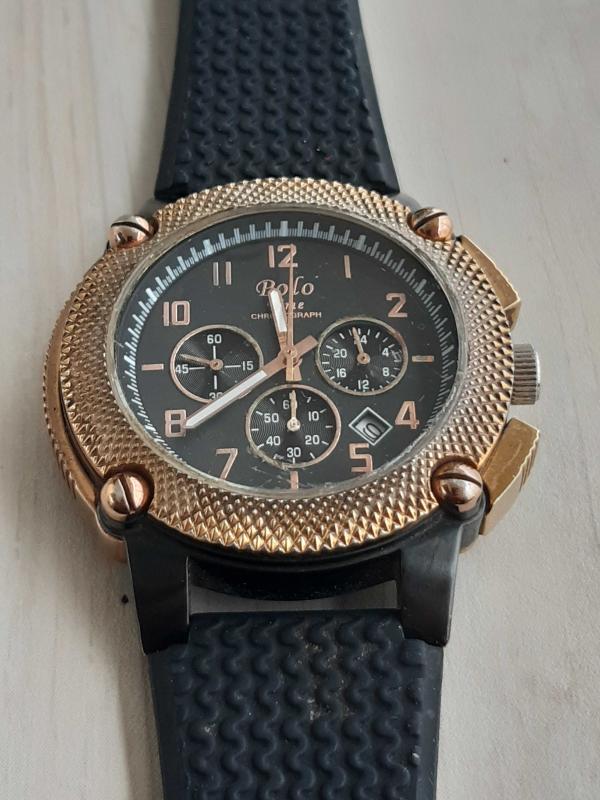 💥POLO TİME CHRONOGRAPH QUARTZ PİLLİ KOL SAATİ 💥 2.EL TERTEMİZ SAATTİR.ÇELİK KASA,SLİKON KORDON QUARTZ PİLLİ MEKANİZMA ALTTAN KRONOMETRELİ SİYAH RENK KADRAN GOLD KASA AKREP YELKOVANDA FOSFOR TAKVİMLİ.TAKVİM AKTİF. KASA ÇAPI TEPE DAHİ:58mm ÇALIŞIR VAZİYETTE Fotoğraflarda her şey net