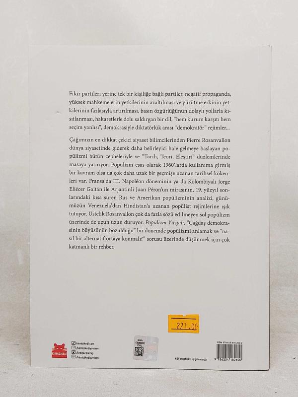 POPÜLİZM YÜZYILI Tarih, Teori, Eleştiri, PIERRE ROSANVALLON tarafından kaleme alınmıştır. Kitap 2023 yılında KIRMIZI KEDİ tarafından yayınlanmıştır. Bu baskının çevirisi SUAT BAŞAR ÇAĞLAN tarafından yapılmıştır. 208 sayfadır. POPÜLİZM YÜZYILI Tarih, Teori, Eleştiri adlı eser Türkçe dilindedir.