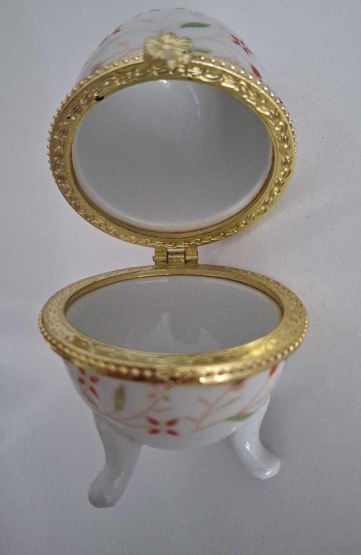 LOT.11 » PORSELEN ÜZERİ ÇİÇEK MOTİFLİ YUMURTA FORMUNDA MÜCEVHER KUTUSU