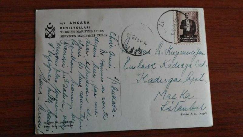 ** POSTADAN GEÇMİŞ S/S ANKARA GEMİSİ KARTPOSTALI ** 14.8 x 10.4 cm.ebadında,arkası yazılı,1953 senesinde postadan geçmiş, 1 adet Ata pullu,iki adet damgalı,gayet temiz durumda, S/S Ankara Gemisi kartpostalıdır...