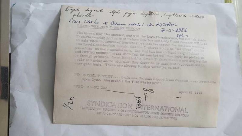 PRENSES DIANA'NIN ORİJİNAL FOTOĞRAFI - ORIGINAL PHOTOGRAPH OF PRINCESS DIANA - 20 x 15 cm EBADINDA - SONİA VE NORMAN HİPPON, NEWCASTLE UPON TYNE YAKINLARINDAKİ DUNSTON'DAN. SONİA, KENDİ BASKILARINI YAPTIĞI TİŞÖRTLERİ SERGİLİYOR. 1981 - SONIA AND NORMAN HIPPON FROM DUNSTON, NEAR NEWCASTLE UPON TYNE. SHE MODELS THE T-SHIRTS HER PRINTS. 1981, en son 24 gün önce güncellenmiştir.