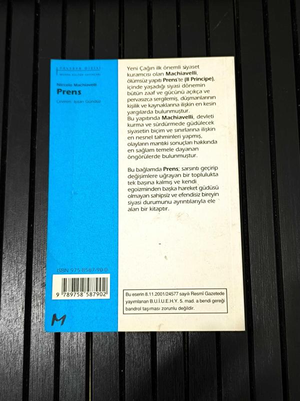 PRENS, NICCOLO MACHIAVELLI tarafından kaleme alınmıştır. Kitap Morpa tarafından yayınlanmıştır. PRENS adlı eser Türkçe dilindedir.