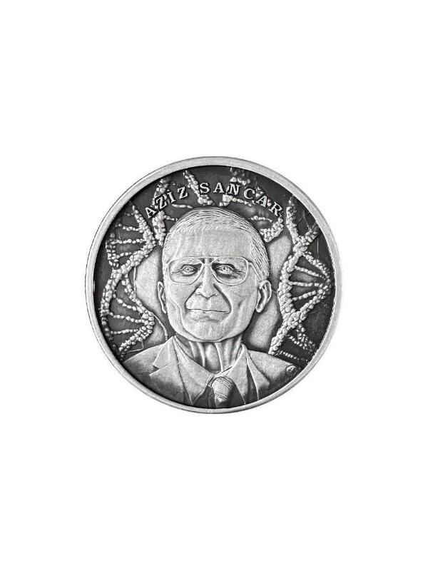 Hatıra Para Adı PROF. DR. AZİZ SANCAR HATIRA PARASI Nominal Değeri 20 Türk Lirası / TRY Metal 925 Ayar Gümüş Çap 38,61 mm Ağırlık 31,10g ± %1gram/g Baskı Özelliği Okside/Oxide Kenar Tırtıllı Maksimum Baskı 3000 adet / pcs. Tedavül Süresi 01.10.2024 – 01.10.2026