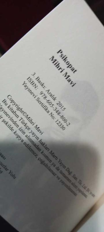 PSİKOPAT 3 KİTAP TAKIM - CİLTLİ, MİHRİ MAVİ tarafından kaleme alınmıştır. Kitap 2015 yılında MARTI YAYINCILIK tarafından [İstanbul] yayınlanmıştır. 493 sayfadır. PSİKOPAT 3 KİTAP TAKIM - CİLTLİ adlı eser Türkçe dilindedir.