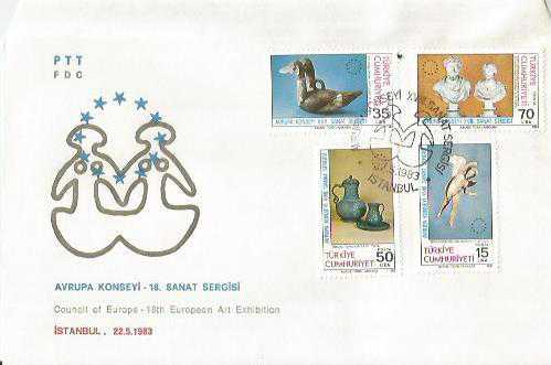 PTT İLK GÜN ZARFI - AVRUPA KONSEYİ - 18. SANAT SERGİSİ TEMALI - İSTANBUL 22.5.1983 - 4 PULLU KAŞELİ, en son 1 yıl önce güncellenmiştir.