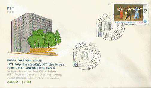 PTT İLK GÜN ZARFI - POSTA SARAYININ AÇILIŞI TEMALI - ANKARA 3.5.1982 - PULLU ÇİFT KAŞELİ, 6 yıl önce satışa sunulmuştur.