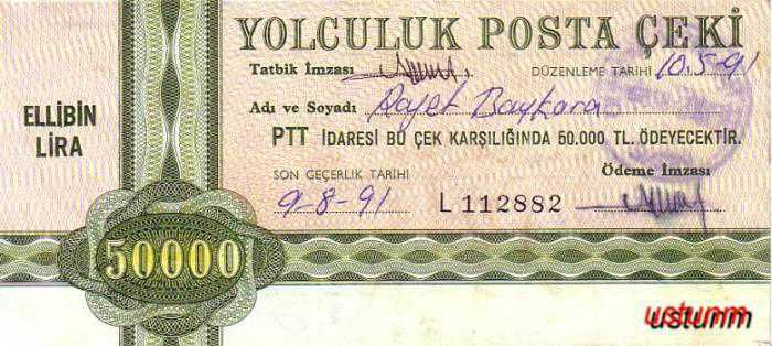 ** YOLCULUK POSTA ÇEKİ ** P.T.T. Malatya Başmüdürlüğü damgalı,temiz durumda yolculuk posta çekidir...