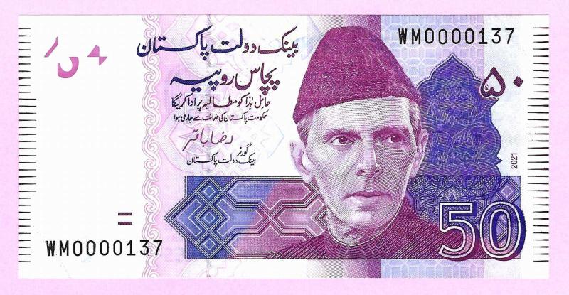 Pakistan 50 Rupees 2021 P 47 SERIAL WM 0000137 UNC (TK 19 456) ÇİL, en son dün güncellenmiştir.