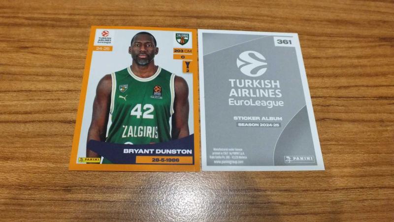 Panini EuroLeague Basketball 2024-2025 Bryant Dunston Zalgiris Kaunas Sticker No:361 başlıklı antika/koleksiyon objesi Avrupa menşe’lidir. 2000 ve sonrası dönemine aittir.