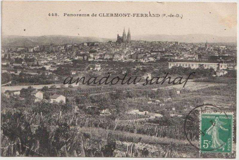 Panorama de Clermont Ferrand, 1913 / Fransız Postasından Geçmiş, Ön Yüzü Pullu ve Damgalı ''Mousieur le Capitanie Nourreddin Bey'' ithafıyla gönderilmiş.