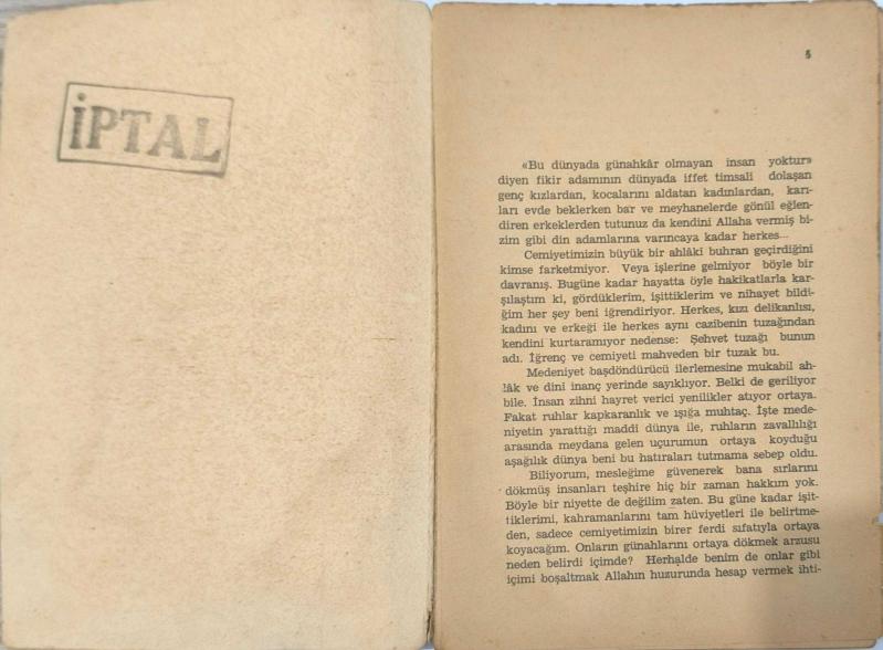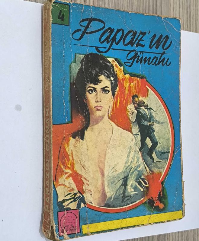 Papazın Günahı, eski dönem cep romanlarının dikkat çekici atmosferini taşıyan, güçlü kapak tasarımıyla öne çıkan nostaljik bir eserdir. Döneminin popüler okuma kültürünü yansıtan bu kitap, özellikle eski baskı romanlar ve koleksiyonluk cep kitapları sevenler için ilgi çekici bir parçadır. Retro görünümü ve dönem hissiyle koleksiyon, arşiv ve dekoratif amaçlı değerlendirilebilecek bir nüshadır. Kondisyon: Kapakta belirgin yıpranma, kırışıklık, kenar ve köşe aşınmaları vardır. Sırt kısmı yorgundur. İlk 4 sayfa eksiktir, 5. sayfa ciltten kopuktur ve iç kısımda iptal kaşesi bulunmaktadır.