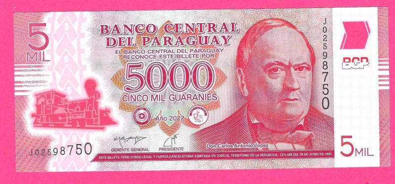 Paraguay 5.000 Guaranies 2022 p234 UNC ÇİL, dün satışa sunulmuştur.
