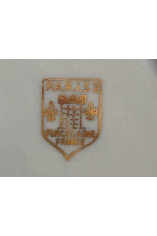 Paris porselen kase 23,5 cm çapında 6 cm yüksekliğinde başlıklı antika/koleksiyon objesinin menşei belirtilmemiştir. Objenin ait olduğu dönem bilinmeketedir.