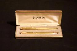 Parker altın kaplama ikili kalem seti. Orijinal kutusunda. Kalem boyları:13.cm.