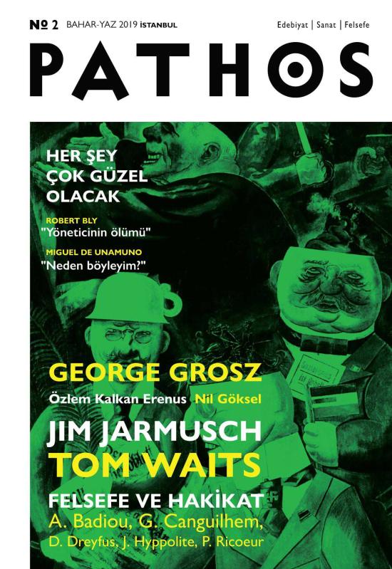 Dönemsel edebiyat, sanat ve felsefe yayını Pathos’un ikinci sayısı raflardaki yerini aldı. Pathos’un No.2 Bahar-Yaz 2019 sayısı, Amerikalı şair Robert Bly’ın daha önce Türkçeye çevrilmemiş beş şiiriyle başlıyor. Ardından Türk şiirinin önemli isimleri; Enis Batur, Osman Serhat Erkekli, Osman Çakmakçı, Ender Emiroğlu, Cenk Gündoğdu, Mete Erciş, Cem Kertiş, ve Esma Özlem ile devam ediyor. Denemeleriyle Enis Batur, Taner Ay ve Melisa Kurtcan; öyküleriyle Miguel de Unamuno, Dilek Yılmaz, Mehmet Fırat Pürselim ve Hikmet Temel Akarsu ikinci sayının konukları arasında yer alıyor. Sanat bölümü, Dada akımının öncülerinden George Grosz ile açılıyor. Nil Göksel'in “Groszesk dünyanın bir türlü gelmeyen sonu” ve Özlem Kalkan Erenus'un “Gizli anlamın ifşası – Belin Kolajları” adlı değerli yazıları Dada ve Groszseverlerin dikkatinden kaçmayacaktır. Gülseli İnal'ın “Arzu ve Tablo - Berkan Baycan resmi üzerine”, Ayşe M. Kalay'ın fütürizm-sanat ilişkisini tartıştığı “Geleceği öngören sanat” yazıları, Asya Tura'nın ressam Kader Genç ile söyleşisi sanat bölümünün diğer başlıkları arasında yer alıyor. Pathos No.2'nin doksan sayfalık sanat bölümünün en çok ilgi çekmesi olası konuklarıysa bağımsız sinemanın önde gelen ismi Jim Jarmusch ve ona pek çok filminde eşlik eden usta şarkıcı, söz yazarı Tom Waits... Jarmusch'un “Kurallar” ve “Stranger than paradise üzerine bazı notlar” adlarını taşıyan iki yazısı, Onur Kırşavoğlu'nun Jarmusch incelemesi, Gül Esra Atalay ile Bahar Muratoğlu Pehlivan'ın ortaklaşa kaleme aldıkları “Sadece âşıklar hayatta kalır” denemesi Jarmusch sinemasıyla ilgililenenleri fazlasıyla memnun edecektir. Murat Beşer'in “Bir yağmur köpeği: Tom Waits”, S. Wackwitz'in “Uçan Esirler: Tom Waits üzerine bir deneme” yazılarından sonra, Mladen Dolar'ın “Sanat nedir?” başlıklı denemesiyle sanat bölümü sona eriyor. Jacques Derrida'nın “Arşiv humması”, Maurice Blanchot'nun “Dostluk üzerine” denemeleri, ayrıca Alain Badiou, Jean Hyppolite, Georges Canguilhem, Paul Ricoeur, Michel Foucault ve Dina Dreyfus'un “Felsefe ve Hakikat” konulu söyleşisi Murat Erşen'in usta işi çevirisiyle okurların beğenisine sunuluyor.