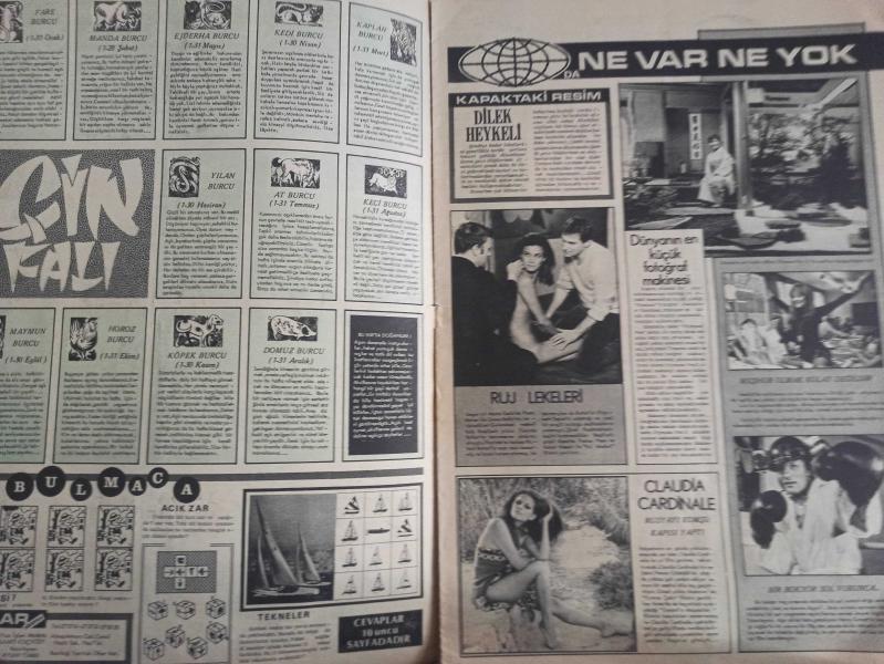 Pazar Ekstra Haftalık Aktüalite Sinema Tiyatro Müzik ve Magazin Dergisi - 13 Nisan 1969 - Sayı:19 - Çin Falı - Bulmaca - Ne Var Ne Yok - Dilek Herkeli - Ruj Lekeleri - Claudia Cardinale - Dünyanın En Küçük Fotoğraf Makinesi - Federico Fellini - Cehennem Melekleri - İşleri Güçleri Bilye Oynamak - Satyricon - İdeal Kadın Yaratıldı - Kırık Kalp - Kanun Namına - Türkan Şoray Boğulma Tehlikesi Geçildi - Ayhan Işık Yabancı Dil Öğreniyor - Mine Mutlu Evlenmiyeceğim Diyor - Sevda Ferdağ'ın Başı Dertte - Tunç Oral'da Film Şirketi Kuruyor - Bunları Biliyor Musunuz? - 1969'un Aksesuarı - Sevilen Bir İnsan Mısınız? - Adresi Biliyorsun - Şaka fotoğraf ve haberi - Tam Takım Dergi Yıpranma, sararmalar, kupon kesiği ve yırtılmalar zamana bağlı olarak görülebilir