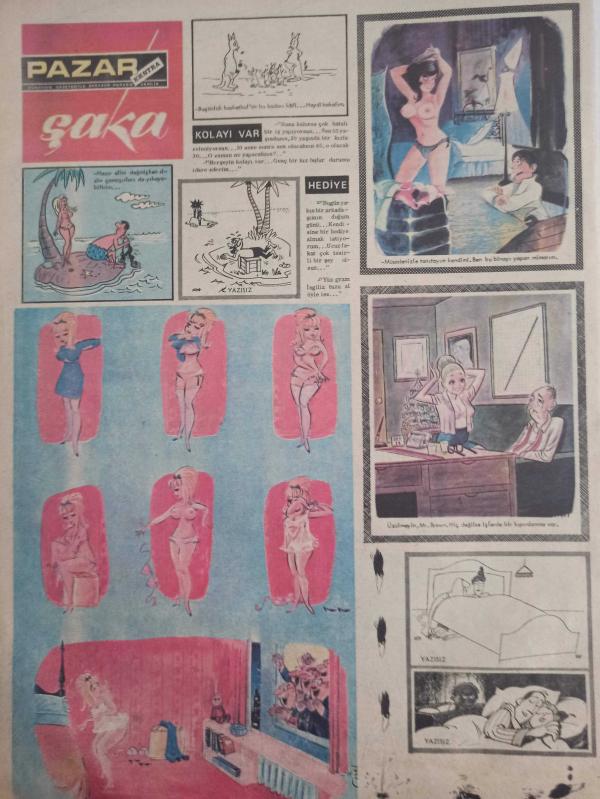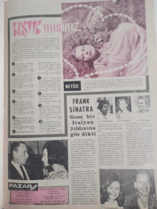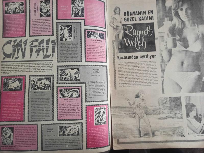 Pazar Ekstra Haftalık Aktüalite Sinema Tiyatro Müzik ve Magazin Dergisi - 8 Aralık 1968 - Sayı:2 - Esra Bereket - Çin Falı - Raquel Welch - Dünyanın en güzel kadını kocasından ayrılıyor - Paris Şehvet Afişleriyle Doldu - Les Cevennes - La France - Özel Türkbaş - 3 Yıldız 3 Hikaye - Leyla Sayar - Sema Özcan - Semiramis Pekkan - Mücevherler Kraliçesi - Çılgın bir hayat yaşıyor - Ahmet Sokarno - Tazminat almak için gayri meşru çocuk doğurdu - On Bir Dolar - Alfred Hitchcock takdim eder - Aşık mısınız? - Frank Sinatra genç bir İtalyan yıldızına göz dikti - Ava Gardner - Nancy Barbato - Mia Farrow - Pazar Şak fotoğraf ve haberi - Tam Takım Dergi Yıpranma, sararmalar, kupon kesiği ve yırtılmalar zamana bağlı olarak görülebilir