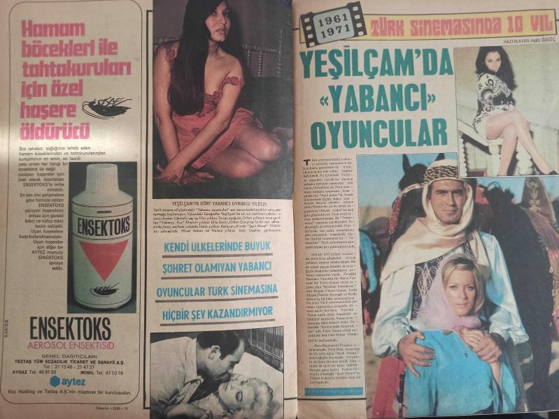 Pazar Haftalık Aktüalite Sinema Tiyatro Müzik ve Magazin Dergisi - 1 Eylül 1977 - Sayı:1093 - Feri Cansel - Hülya Korur - Ahu Tuğba bu kez kendine bir türk sevgili buldu - Ayhan Işık da sakal bıraktı - Tarık Akan arkadaşının doğum gününü kutladı - Şantöz Kumru tıpkı kovboy filmlerindeki gibi ufacık bir leğende aynı suyla birkaç kez yıkanmanın sırrını buldu - Hülya Korur, gönlünce bir tatil geçiriyor - Sekiz yıldır Avrupa'da dans eden Hülya Korur tatil için yurda geldi - Meral Zeren: ''İzmir'de beni çetin bir sınav bekliyor, ama başaracağım'' - Feri Cansel sinemaya geçmek için çırpınan kızını zapt edemiyor - Neri Neril Paris'te sahnede, İstanbul'da ise plajda soyunuyor - Romalı Perihan kendini eğlenceye verdi - Zerrin Doğan da kendine yeni bir sevgili buldu - Marie Pierre anılarını yayınladı ''Çıplak model nasıl oldum?'' fotoğraf ve haberi - Tam Takım Dergi adlı eser, Kitap > Süreli Yayınlar > Dergiler > Magazin, Moda kategorisinde İkinci El olarak satıştadır.