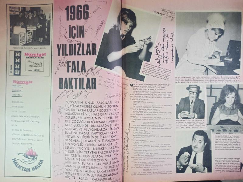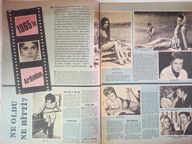 Pazar Haftalık Aktüalite Sinema Tiyatro Müzik ve Magazin Dergisi - 1 Ocak 1966 - Sevda Ferdağ - Selda Alkor - Fatma Girik - Türkan Şoray - Semra Sar - Ayhan Işık - Tamer Yiğit - Hülya Koçyiğit - Göksel Arsoy - Suzan Avcı - Neriman Köksal - Feridun Kete - Sevim Çağlayan - Yılmaz Gündüz - Ajda Pekkan - Gönül Yazar - Özden Çelik - Vahi Öz - Bilge Tandoğaç - Necdet Tosun - Neriman Köksal - Filiz Akın - Nuran Aksoy - Çolpan İlhan - Orhan Günşiray - Yılmaz Güney - Süleyman Turan - Tamer Yiğit - Yıldız Tezcan - Semih Sergen - Leyla Sayar - Öztürk Serengil - Filiz Akın fotoğraf ve haberi - Ne Oldu Ne Bitti Haberi - 1966 İçin Yıldızlar Fala Baktı Haberi - Pop Sabun Reklamı - Taft Saç Spreyi Reklamı - İpana Diş Macunu Reklamı - Genç Arkadaşlar Fotoromanı - Kırık Kalp Fotoromanı - Tam Takım Dergi Yıpranma, sararmalar, kupon kesiği ve yırtılmalar zamana bağlı olarak görülebilir