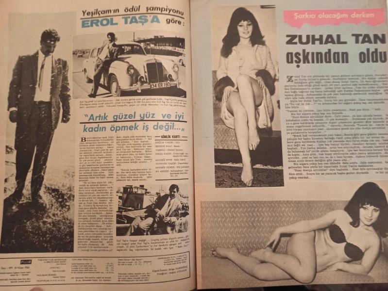 Pazar Haftalık Aktüalite Sinema Tiyatro Müzik ve Magazin Dergisi - 16 Nisan 1966 - Sayı:499 - Yeşilçam'da bir balerin - Bilge Tandoğaç - Fotoroman yıldızlığı yeni bir meslek oldu - Nalan Çöl - Meral Küçükerol - Erol Taş'a göre: ''Artık güzel yüz ve iyi kadın öpmek iş değil'' - Zuhal Tan aşkından oldu - Selda Alkor ve Tanju Gürsu nişanlanıyor - Sinema Haberleri - Hayri Caner - Hülya Koçyiğit - Bardaklar havalarda uçmazdı - Mine Soley - Burhan Abaydın - Tülay German - Mine Soley - Doctor Renaud Krem Reklamı - Hanımlar İçin - Zeynep Berk - Yıldızınız - Brigitte Overbye göğüsleriyle bir anda şöhrete ulaştı - Bu göğüslerin sigortası tam 1 milyon lira - Erol Taş fotoğraf ve haberi - Tam Takım Dergi Yıpranma, sararmalar, kupon kesiği ve yırtılmalar zamana bağlı olarak görülebilir