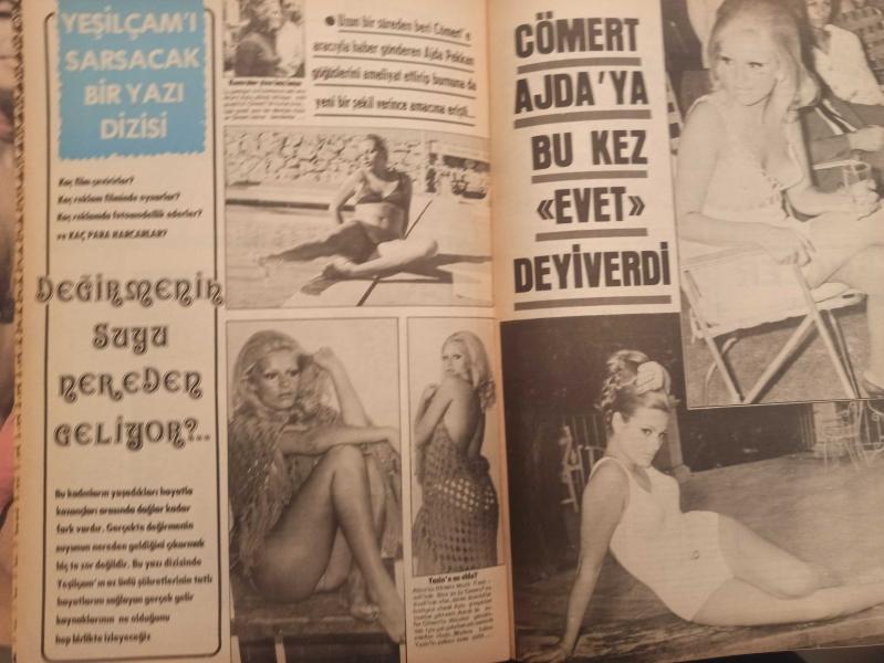 Pazar Haftalık Aktüalite Sinema Tiyatro Müzik ve Magazin Dergisi - 1974 Yılı - Sayı:979 - Mine Mutlu - Funda Balcı - Bir Düşüşün Öyküsü - Cüneyt Arkın - Zerrin Arbaş - Atıf Yılmaz - Gönül Tansel - Gülgün Erdem - Nazan Şoray - Sevtap Coşkun - Yonce Yücel - Prenses Banu - Feri Cansel - Perihan Ateş - Meral Zeren'e de artık Yeşilçam'da iş kalmadı - Yeşim Yükselen Dev Posteri - Ünlüler Albümü: Leyla Sayar - Sevda Ferdağ - Fatma Girik - Leyla Sayar - Selma Güneri - Sevil Candan - Muzaffer Tema - Zuhal Üstüntaş - Muhterem Nur - Süha Doğan - Orhan Günşiray - Ahmet Tarık Tekçe - Cenk Er - Turgut Demirağ - Ekrem Bora - Metin Erksan - Sadri Alışık - Şadan Kamil - Aynur Akarsu ''Tatlı Hayat''la iş hayatını birleştirdi - Temel Gürsu - Orçun Sonat - Ajda Pekkan - Aşk konusunda Nebahat Çehre beraberliklerine sadık kaldı - Yılmaz Güney - Zühal Üstüntaş - Gürel Ünlüsoy - Semiramis Pekkan - Göksel Arsoy - Yavuz Demir - Yılmaz Güney fotoğraf ve haberi - Posterli Tam Takım Dergi Yıpranma, sararmalar, kupon kesiği ve yırtılmalar zamana bağlı olarak görülebilir