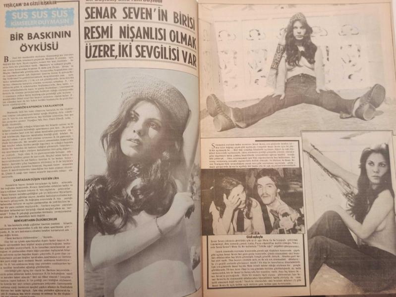 Pazar Haftalık Aktüalite Sinema Tiyatro Müzik ve Magazin Dergisi - 1974 Yılı - Sayı:981 - Meral Orhonsay - Aynur Akarsu - Senar Seven'in birisi resmi nişanlısı olmak üzere, iki sevgilisi var - Selen Batıkan İstanbul-Bursa mekik dokuyor - Serpil Örümcer - Berkant - Engin Işık - Seyyal Taner Dev Posteri - Yılmaz Köksal - Tevfik Fikret - Arzu Okay - Çetin İnanç - Eva Bender - Tunç Başaran - Ülkü Özen - Arzu Okay - Hale Soygazi - Ahmet Özhan - Yücel Uçanoğlu - Ayla Algan - Kartal Tibet - Fatma Belgen - Elif Pektaş - Ajda Pekkan - Tennur Solak - Ahmet Tarık Tekçe - Öztürk Serengil - Senih Orkan - Sevda Ferdağ fotoğraf ve haberi - Posterli Tam Takım Dergi Yıpranma, sararmalar, kupon kesiği ve yırtılmalar zamana bağlı olarak görülebilir