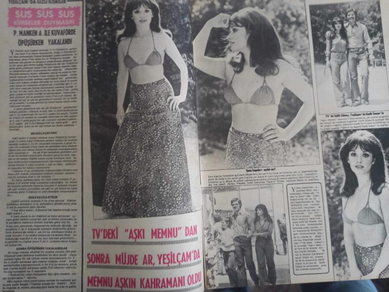 Pazar Haftalık Aktüalite Sinema Tiyatro Müzik ve Magazin Dergisi - 1976 Yılı - Sayı:984 - Nazan Şoray - Ahu Tuğba - Müjde Ar, Yeşilçam'da Memnu Aşkın kahramanı oldu - Salih Güney - Kadir İnanır - Tufan Giray - Fatma Belgen - Niyazi Kasabalı - Nezihi Tümay - Gülseren Çelik - Sevinç Duygu - Selva Canyoran - Dinçer Bıçakkan - Çiğdem Pirim - Çölban Özakar - Orhan Şevki - Asu Maralman - Rüçhan Çamay - Pakize Suda - Aynur Aydan - Metin Akpınar - Samim Y. Baki - Gülşen Koçal - Tolga Aşkıner - İbrahim Şensoy - Zihni Seden - Kemal Özkan - Leyla Sayar - Rüçhan Çamay - Fatma Belgen - Ahmet gülhan - Yalçın Gülhan - Şantöz Aylin - Sevgi Can - Doğan Bilge - Tülin Elgin'den sonra Aylin'in cenazesini kaldırmak İstanbul Belediyesine düştü - Figen Han Dev Posteri - Ünlüler albümü: Esen Püsküllü - Salih Güney - Yıldırım Önal - Cüneyt Arkın - Hulki Saner - Murat Soydan - Cüneyt Gökçer - Gülten Ceylan - Yılmaz Köksal - Erol Büyükburç - Atacan Arseven - Sadri Alışık - Prenses Banu - Posterli Tam Takım Dergi Yıpranma, sararmalar, kupon kesiği ve yırtılmalar zamana bağlı olarak görülebilir