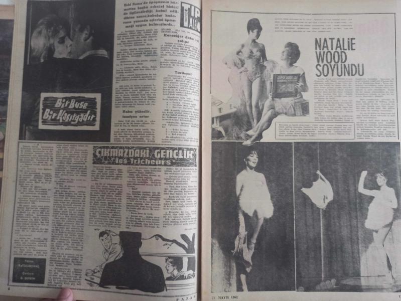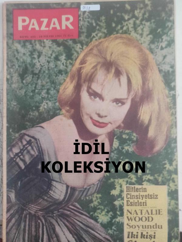 Pazar Haftalık Aktüalite Sinema Tiyatro Müzik ve Magazin Dergisi - 20 Mayıs 1962 - Sayı:295 - Elke sommer - Natalie Wood - Şundan Bundan - Ulvi Uraz - Tolga Teğin - Oya Tara - Faruk Çağlayan - Cutex Ruj Reklamı - Fakir Gerda - Pazar fantazi - Yalçın Kaya - Kibar Hırsız çizgi romanı - Garip ama gerçek - Rio Dolores Serafini - Cilff Richard - Perry Como - Frank sinatra - Yenilmez Yumruk Ben Bolt Çizgi Romanı - Bir Buse Bir Kasırgadır - Çıkmazdaki Gençlik - Natalie Wood soyundu - Ölüm Doktorları - Hitler'in cinsiyetsiz esirleri - Genç Kız Kalbi çizgi romanı - merhamet - Röntgen şuaı - İlham Perileri - İki kişi ölecek - Nadide Erbesler -Zeynep Ziyal - Hanımlarla başbaşa - Zeynep Berk - Paris'te en çok alkışlanan modeller - Miki Fare ve Brik Bradford Çizgi Romanları - Paul Norris - Fıkra - Beterin Beteri - Sabır - Canlı Bebekler - Barbara'nın Gölgesi - Hollywood üzerine yazılmış romanların en güzeli - Serge Dalene - Barbara dokuz gündür meydanda yok! - Tam Takım Dergi Yıpranma, sararmalar, kupon kesiği ve yırtılmalar zamana bağlı olarak görülebilir