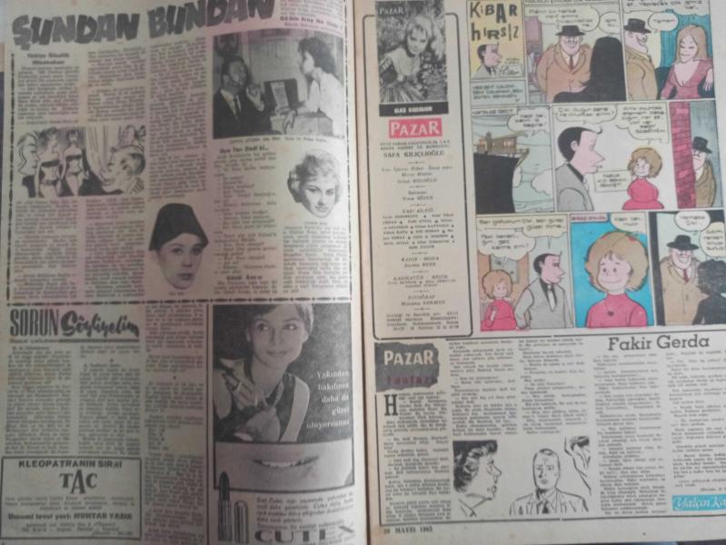 Pazar Haftalık Aktüalite Sinema Tiyatro Müzik ve Magazin Dergisi - 20 Mayıs 1962 - Sayı:295 - Elke sommer - Natalie Wood - Şundan Bundan - Ulvi Uraz - Tolga Teğin - Oya Tara - Faruk Çağlayan - Cutex Ruj Reklamı - Fakir Gerda - Pazar fantazi - Yalçın Kaya - Kibar Hırsız çizgi romanı - Garip ama gerçek - Rio Dolores Serafini - Cilff Richard - Perry Como - Frank sinatra - Yenilmez Yumruk Ben Bolt Çizgi Romanı - Bir Buse Bir Kasırgadır - Çıkmazdaki Gençlik - Natalie Wood soyundu - Ölüm Doktorları - Hitler'in cinsiyetsiz esirleri - Genç Kız Kalbi çizgi romanı - merhamet - Röntgen şuaı - İlham Perileri - İki kişi ölecek - Nadide Erbesler -Zeynep Ziyal - Hanımlarla başbaşa - Zeynep Berk - Paris'te en çok alkışlanan modeller - Miki Fare ve Brik Bradford Çizgi Romanları - Paul Norris - Fıkra - Beterin Beteri - Sabır - Canlı Bebekler - Barbara'nın Gölgesi - Hollywood üzerine yazılmış romanların en güzeli - Serge Dalene - Barbara dokuz gündür meydanda yok! - Tam Takım Dergi, Haldun Simavi tarafından kaleme alınmıştır. Kitap 1962 yılında Veb Ofset İleri Matbaacılık tarafından [İstanbul] yayınlanmıştır. 20 sayfadır. Pazar Haftalık Aktüalite Sinema Tiyatro Müzik ve Magazin Dergisi - 20 Mayıs 1962 - Sayı:295 - Elke sommer - Natalie Wood - Şundan Bundan - Ulvi Uraz - Tolga Teğin - Oya Tara - Faruk Çağlayan - Cutex Ruj Reklamı - Fakir Gerda - Pazar fantazi - Yalçın Kaya - Kibar Hırsız çizgi romanı - Garip ama gerçek - Rio Dolores Serafini - Cilff Richard - Perry Como - Frank sinatra - Yenilmez Yumruk Ben Bolt Çizgi Romanı - Bir Buse Bir Kasırgadır - Çıkmazdaki Gençlik - Natalie Wood soyundu - Ölüm Doktorları - Hitler'in cinsiyetsiz esirleri - Genç Kız Kalbi çizgi romanı - merhamet - Röntgen şuaı - İlham Perileri - İki kişi ölecek - Nadide Erbesler -Zeynep Ziyal - Hanımlarla başbaşa - Zeynep Berk - Paris'te en çok alkışlanan modeller - Miki Fare ve Brik Bradford Çizgi Romanları - Paul Norris - Fıkra - Beterin Beteri - Sabır - Canlı Bebekler - Barbara'nın Gölgesi - Hollywood üzerine yazılmış romanların en güzeli - Serge Dalene - Barbara dokuz gündür meydanda yok! - Tam Takım Dergi adlı eser Türkçe dilindedir.