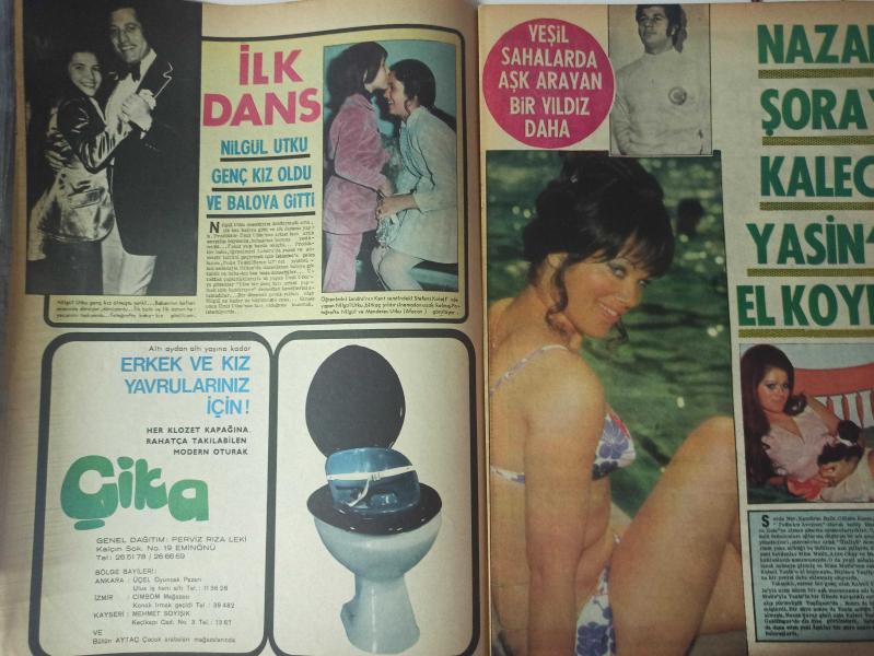 Pazar Haftalık Aktüalite Sinema Tiyatro Müzik ve Magazin Dergisi - 21 Nisan 1972 - Sayı:813 - Filiz Akın - Seher Şeniz - 30 Yıl Öncesinin Modasını Sunuyor - Gülbin Eray - Nazan Berk - Nuran Aksoy - Ülkü Ülker - İrfan Atasoy - Hamiyet Yankı - Seyyal Taner Yeşilçam'a Dönüş Yaptı - Nilgün Utku genç kız oldu ve baloya gitti - Menderes Utku - Nazan Şoray kaleci Yasin'e el koydu - Sevda Nur - Kamuran Ballı - Gülsün Kamu - Nil Başak - Tursil Deterjan Reklamı - Esen Püsküllü - Gülgün Erdem - Seher Şeniz - Sevda Ferdağ, Cüneyt Arkın yatağa girip seviştiler - Meral Küçükerol - Münir Özkul - Türkan Şoray - Piraye Uzun bir ayda üç film çevirdi - Prenses Banu - Bir dişi kaplan - Tamer Yiğit - Nuray Yiğit fotoğraf ve haberi - Tam Takım Dergi Yıpranma, sararmalar, kupon kesiği ve yırtılmalar zamana bağlı olarak görülebilir