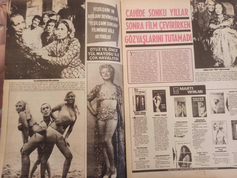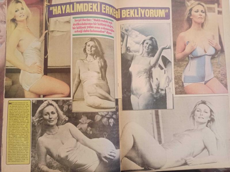 Pazar Haftalık Aktüalite Sinema Tiyatro Müzik ve Magazin Dergisi - 25 Ağustos 1977 - Sayı:1092 - Meral Zeren - Nil Burak - Nükhet Duru sahnelere karnaval havası getirdi - Cahide Sonku- Bülent Kayabaş - Gönül Tansel - Aydemir Akbaş - Zeyno Çilem - Ceyda Karahan - Sesi kısılan Seyyal Taner için tehlike çanı çalıyor - Gypsy Peterson - Barbara Atkinson - Carlos Manzon - Kantocu Meral Küçükerol'a tanga da yasak bikini de yasak - Oya Yurdakul Yeşilçam'ın kurallarına isyan etti - Milyonluk döviz makinesi - Yonca Yücel bir yılda dört ülkeden bir milyon lira yurda döviz yetirdi - Fotomodel Denise Türkiye'de de modellik yaptı ama soyunmadı - Jackie Sewell - Vanya - Anne Marie ıslak giysilerle daha dişi oluyor fotoğraf ve haberi - Tam Takım Dergi adlı eser, Kitap > Süreli Yayınlar > Dergiler > Magazin, Moda kategorisinde İkinci El olarak satıştadır.