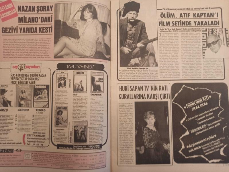 Pazar Haftalık Aktüalite Sinema Tiyatro Müzik ve Magazin Dergisi - 28 Nisan 1977 - Sayı:1075 - Marilyn High - Yaprak - Nazan Şoray Milano'daki Geziyi Yarıda Kesti - Ölüm, Atıf Kaptan'ı Film Setinde Yakaladı - Huri Sapan TV'nin Katı Kurallarına Karşı Çıktı - Safiye Ünal Tipini ve Adını Değiştirince Fiyatı Arttı - Menekşe - Feri Cansel Baharı Görünce Açılıp Saçılıverdi - Mine Mutlu ile Ünal Çulha Kavgalı Aşk Sonunda Evlilikle Bağlanıyor - Sevim Tuna - Kenan Bingöl - Suzan Avcı - Muzaffer Nebioğlu Seks Yarışında Ben de Varım Diyor - Geçmiş Zaman Olur Ki - Perihan Ateş Dans Etmeye Gana'ya Gidiyor - Mualla Akın İmam Nikahı ile Evlendiği Kocasının Özlemine Dayanamıyor - Selda Aşkım'a Nesrin Topkapı Ders Veriyor - Anna Barclay fotoğraf ve haberi - Tam Takım Dergi Yıpranma, sararmalar, kupon kesiği ve yırtılmalar zamana bağlı olarak görülebilir